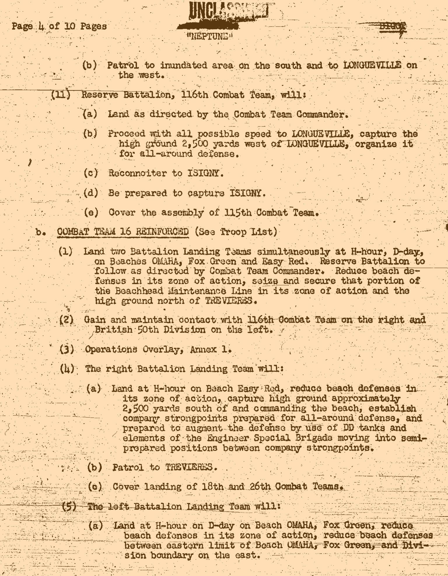 Part 1: 1st Infantry Division Orders to Land on Omaha Beach