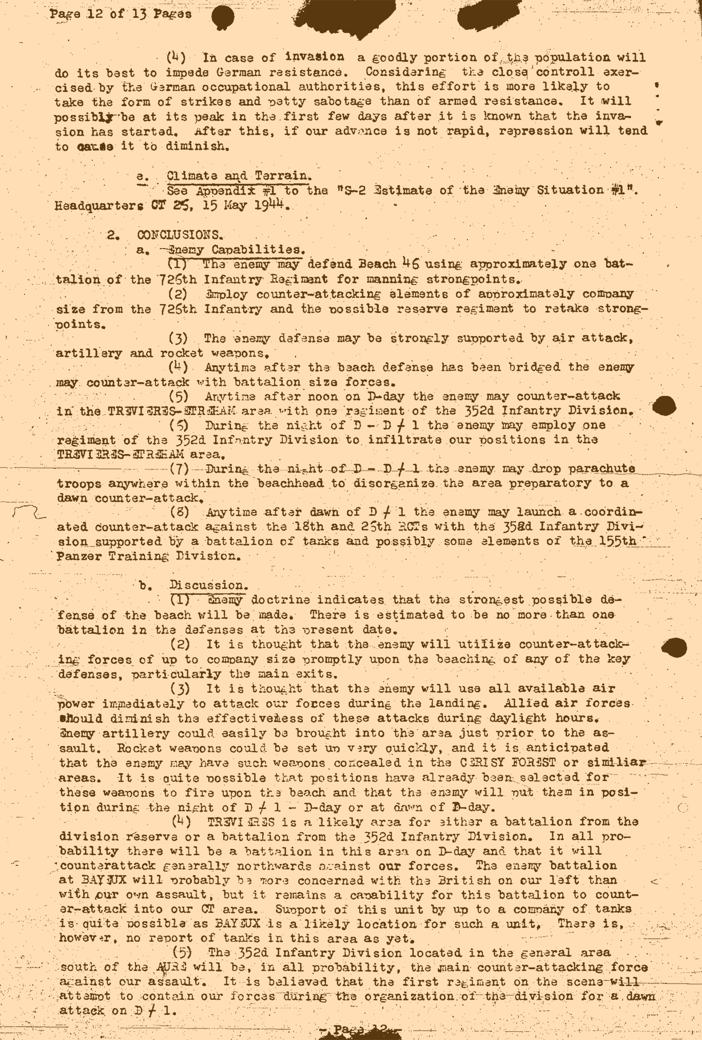 Part 3: German Opposing Force Intelligence Estimates