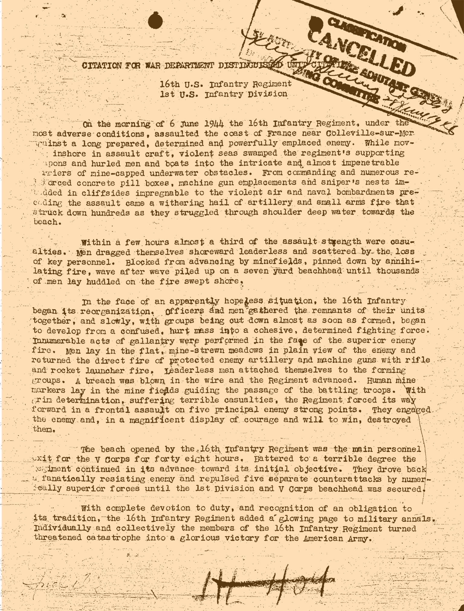 Part 8: 16th Infantry Regiment's Distinguished Unit Citation